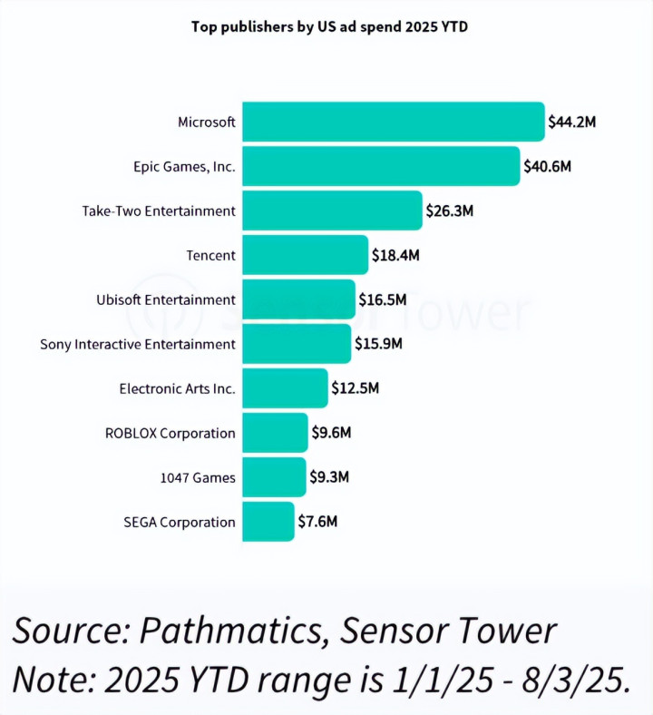 (美国市场PC/主机游戏发行商广告支出排行榜)
