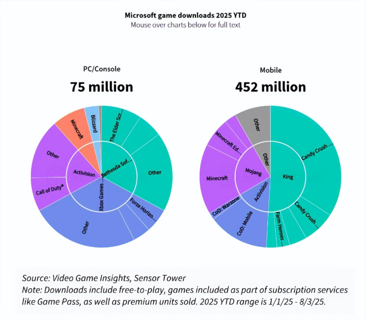 除此之外,贝塞斯达的角色扮演类游戏与Xbox游戏工作室的产品共同构成了微软PC/主机平台新下载量的核心来源。