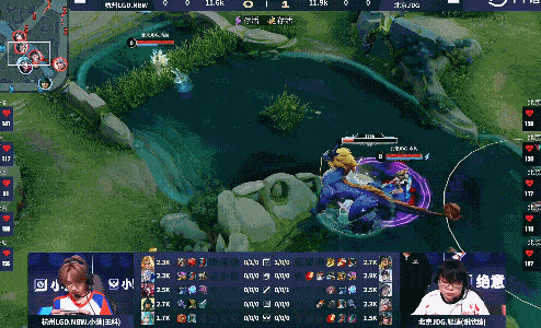 JDG想看对手蓝区甄姬走位过深,LGD上辅追击打出清融掉点