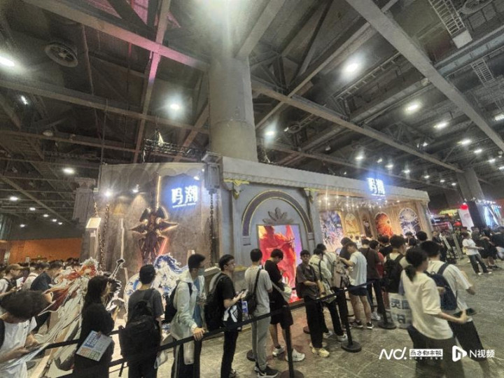 库洛游戏《鸣潮》展区前,为了抢购限量周边,玩家排起几十米长队!
