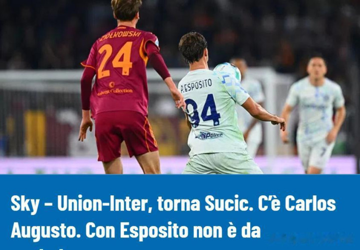 目前《米兰体育报》和天空台的预测相似:前锋新星皮奥·埃斯波西托很可能首发出场,此外防线的德弗赖,边翼卫的奥古斯托,中场的苏契奇、弗拉泰西都可能获得机会。