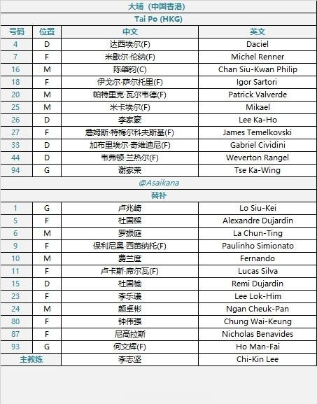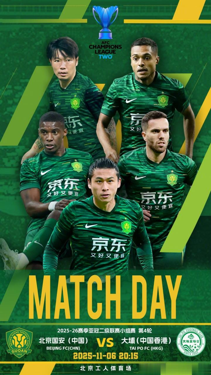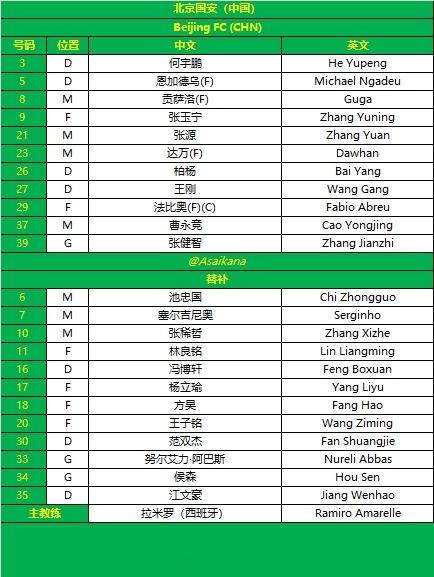 直播吧11月06日讯北京时间今晚20点15分,亚冠二级小组赛E组第4轮,北京国安主场迎战中国香港球队大埔,赛前双方公布首发阵容。