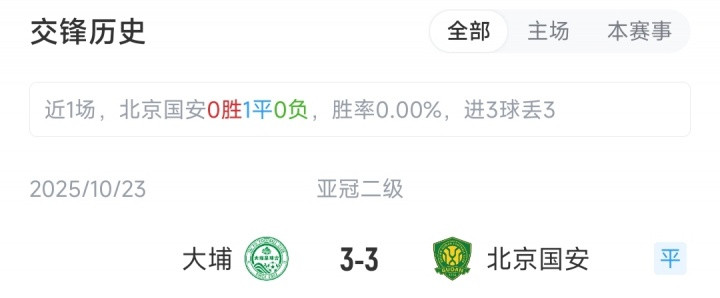 本场比赛开始前,北京国安小组赛2平1负积2分,排名亚冠二级E组积分榜第4;大埔1胜1平1负积4分,排名小组第3。两队首回合交锋,北京国安客场3-3战平大埔。